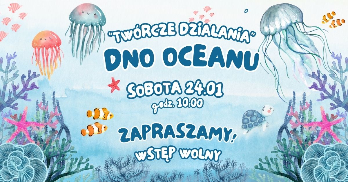 Wszystkie dzieci i ich opiekunów, którzy pragną spędzić ciekawie sobotnie przedpołudnie, w kreatywnej atmosferze i dobrze się przy tym bawiąc, serdecznie zapraszamy na pierwsze w nowym, 2026 roku „Twórcze Działania”. Tym razem wybierzemy się na DNO OCEANU!